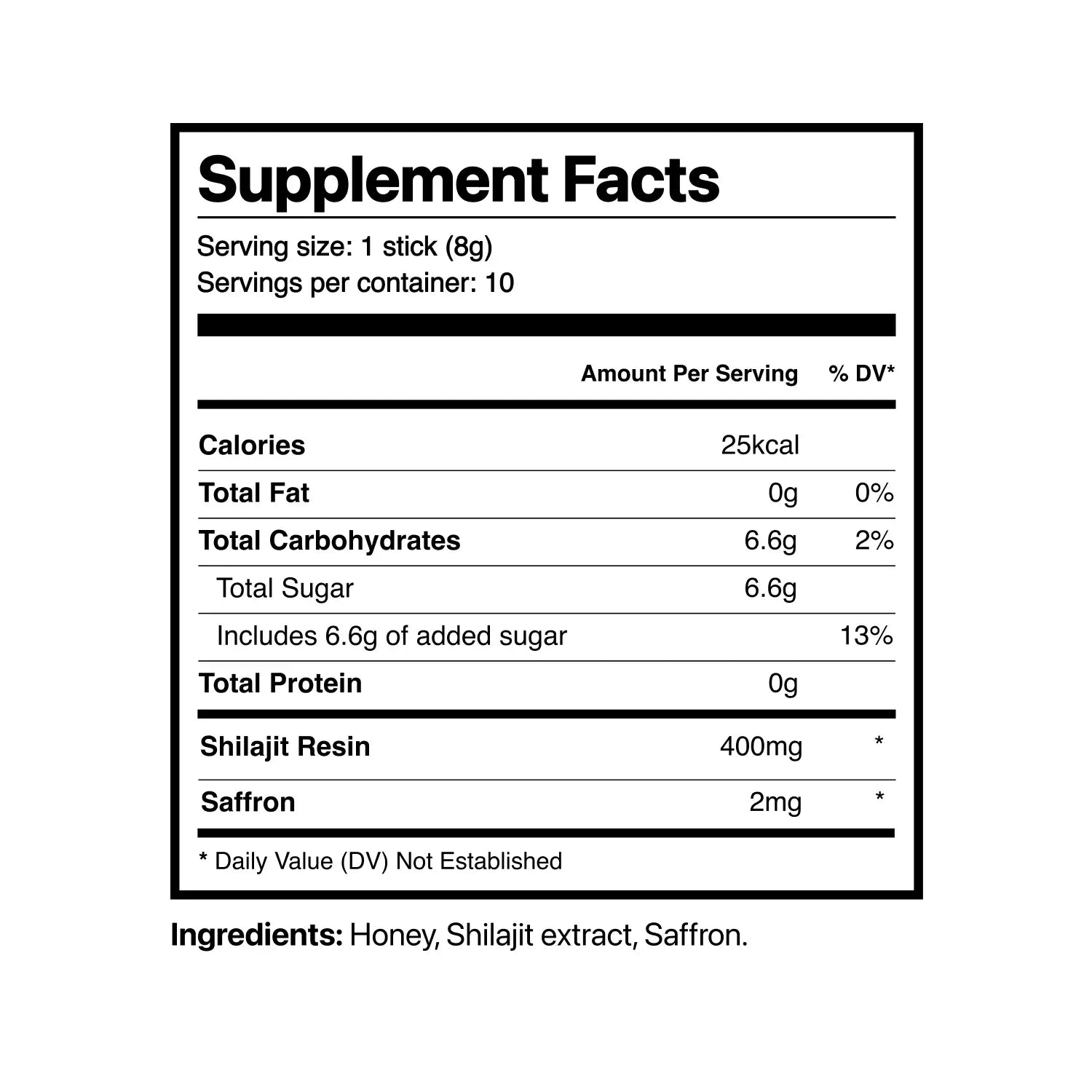 Our formula blends pure, clinically dosed Shilajit with natural honey and saffron, making it not only smoother to take but also more effective. Together, these ingredients deliver fulvic acid, antioxidants, and essential minerals your body can easily absorb, helping to: